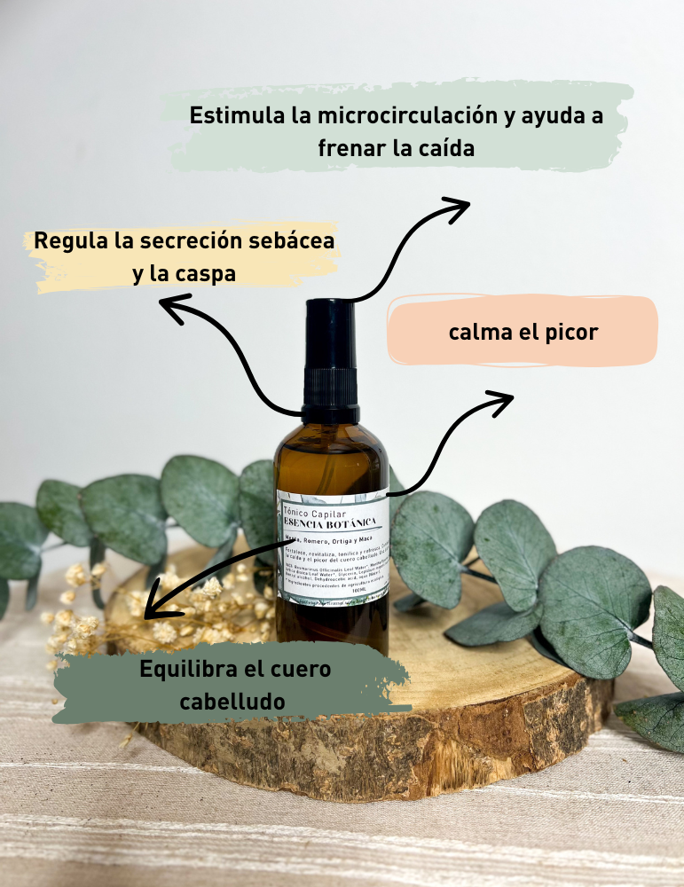 Tónico Capilar Natural Fortalecedor – Menta, Romero, Maca y Ortiga